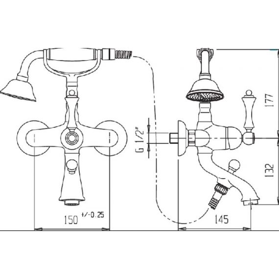 Оснащение: душевой шланг металлический, душевая лейка (латунь), аэратор, дивертор, универсальный установочный комплект