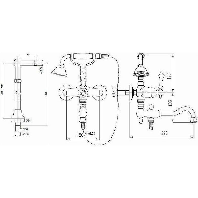 Оснащение: душевой шланг, душевая лейка, аэратор, дивертор, универсальный установочный комплект