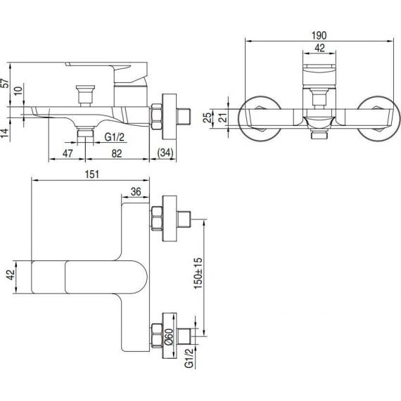 Смеситель для ванны AQG Alpha 01ALP400CR, материал - латунь, цвет - хром.