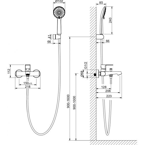 Смеситель для ванны Aquatek Оберон AQ1249CR, материал латунь, цвет хром.