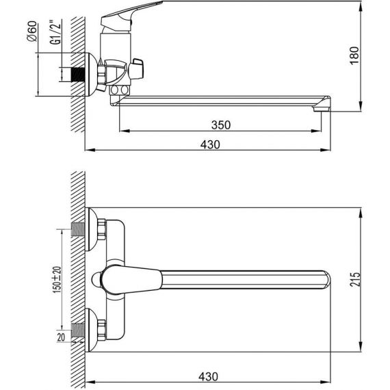 Смеситель для ванны Azario AZ-HU245912 с длинным изливом, материал латунь, цвет хром.