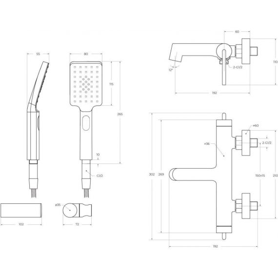 Смеситель для ванны BelBagno ACQUA-VASM/DFS-CRM
