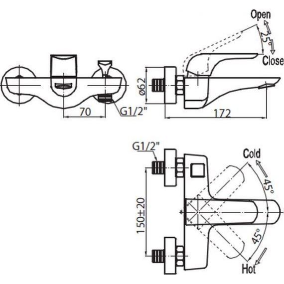 Рабочий интервал давления в водопроводной сети: 0,5-6,0 Атм
