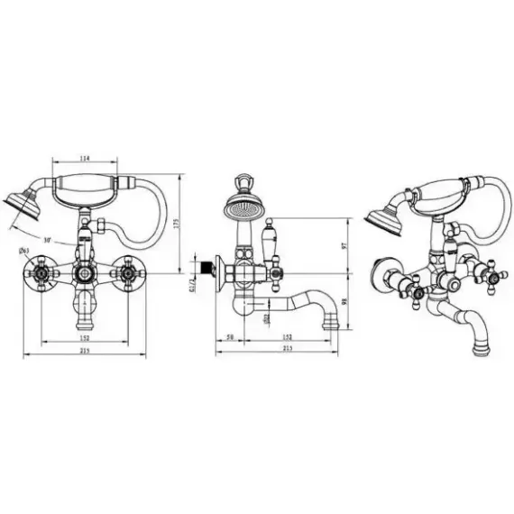 Смеситель для ванны Boheme Tradizionale Chromo 273-Ceramic с душевым гарнитуром, материал латунь, цвет chrome