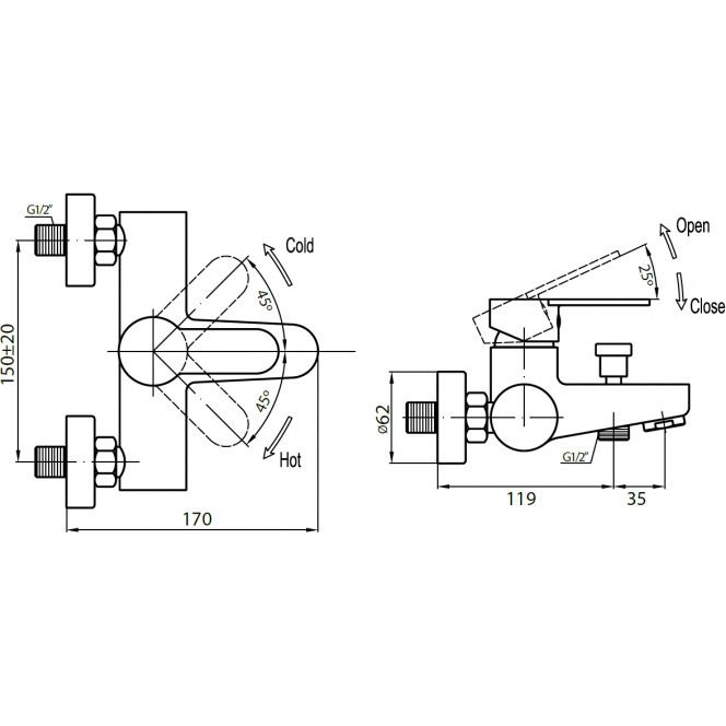 Смеситель для ванны Cezares LACONICO-C-VD-01, материал - латунь, цвет - хром.