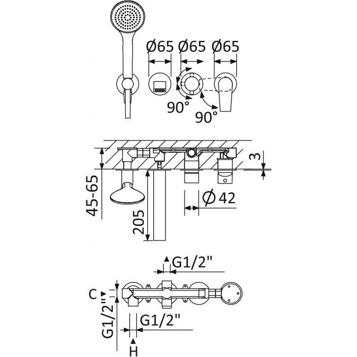 Смеситель для ванны Cezares NAUTIC-VDM3-01 со скрытой частью и душевым гарнитуром, материал латунь, цвет хром.