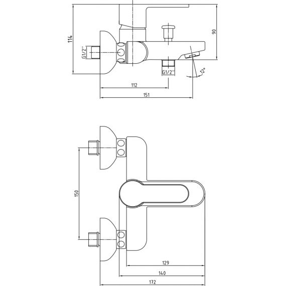 Смеситель для ванны E.C.A. Nita 102102475EX, материал - латунь, цвет - хром.