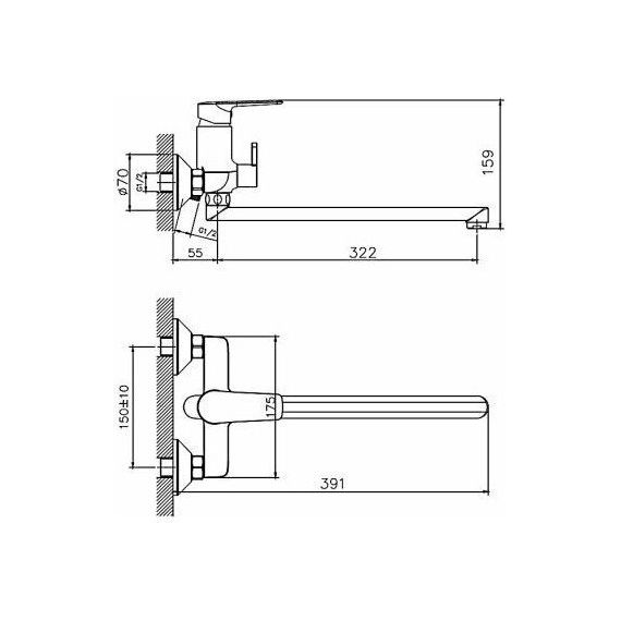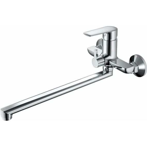 Смеситель для ванны Haiba,с поворотным изливом, с душевой лейкой, держателем и шлангом. Материал - латунь, цвет - хром.