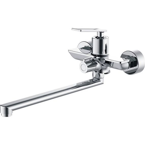 Смеситель для ванны Haiba HB22589 с душевым гарнитуром и длинным изливом, переключатель в корпусе. Материал - латунь, цвет - хром.