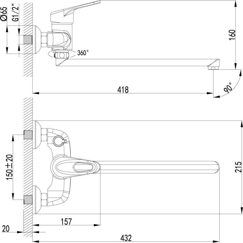 Аксессуары в комплекте: шланг 1,5 м, настенное поворотное крепление, 1-функциональная лейка