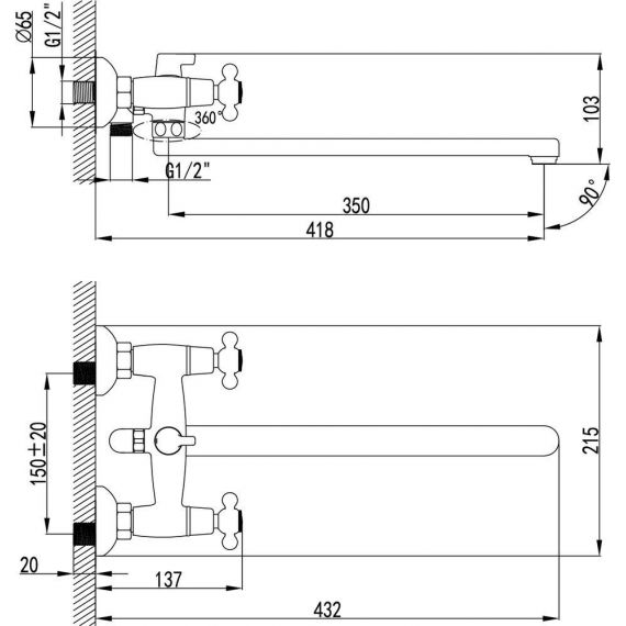 Аксессуары в комплекте: шланг 1,5 м, настенное поворотное крепление, 1-функциональная лейка