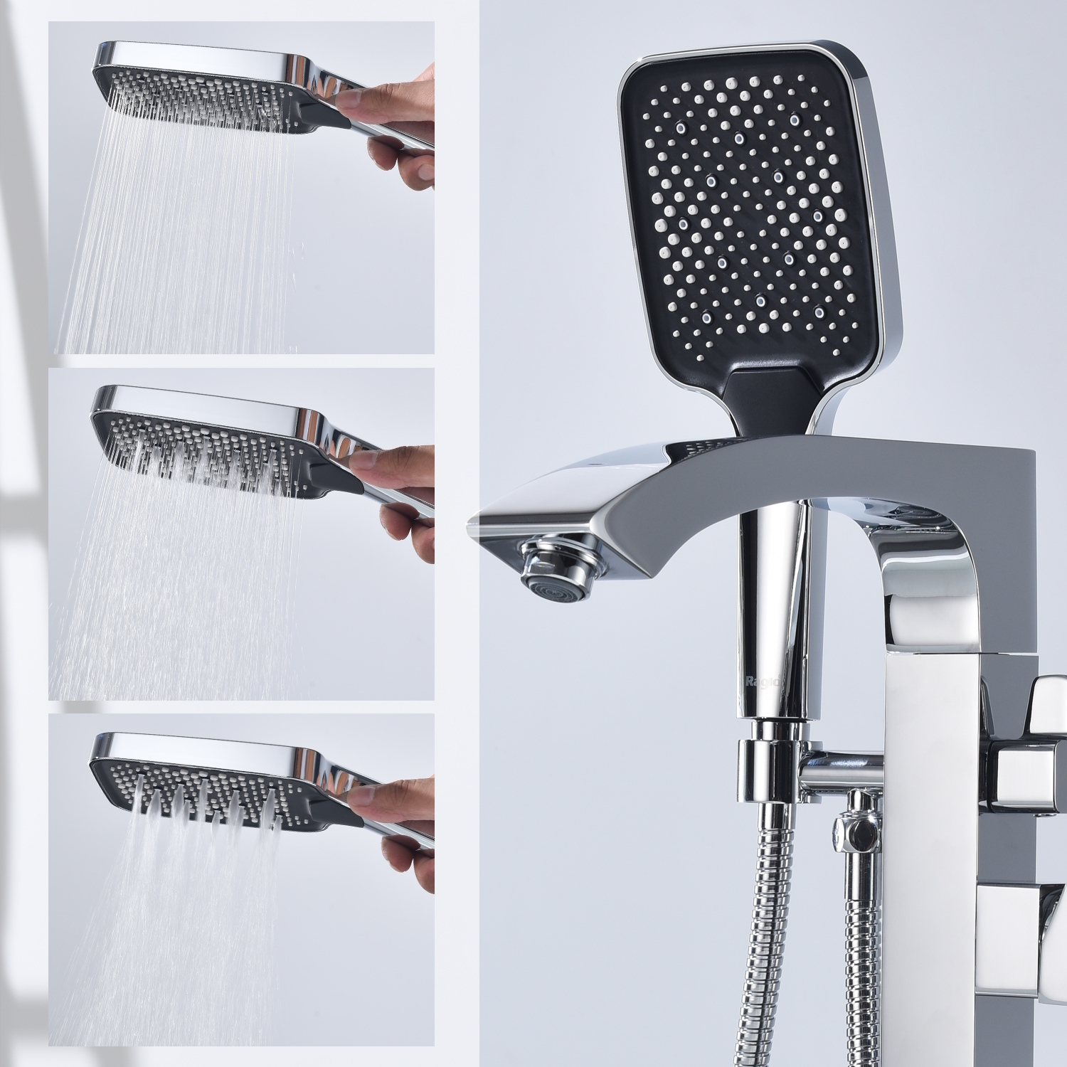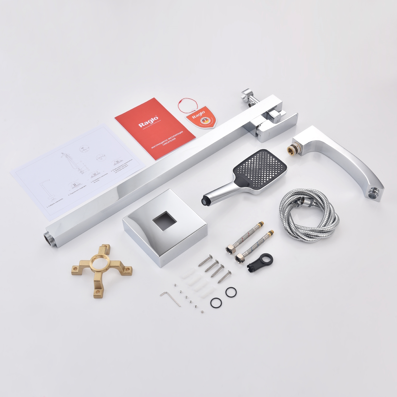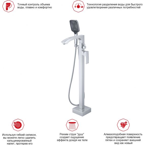 Смеситель для ванны напольный Raglo R01.33 с душевым гарнитуром, материал латунь, цвет хром.