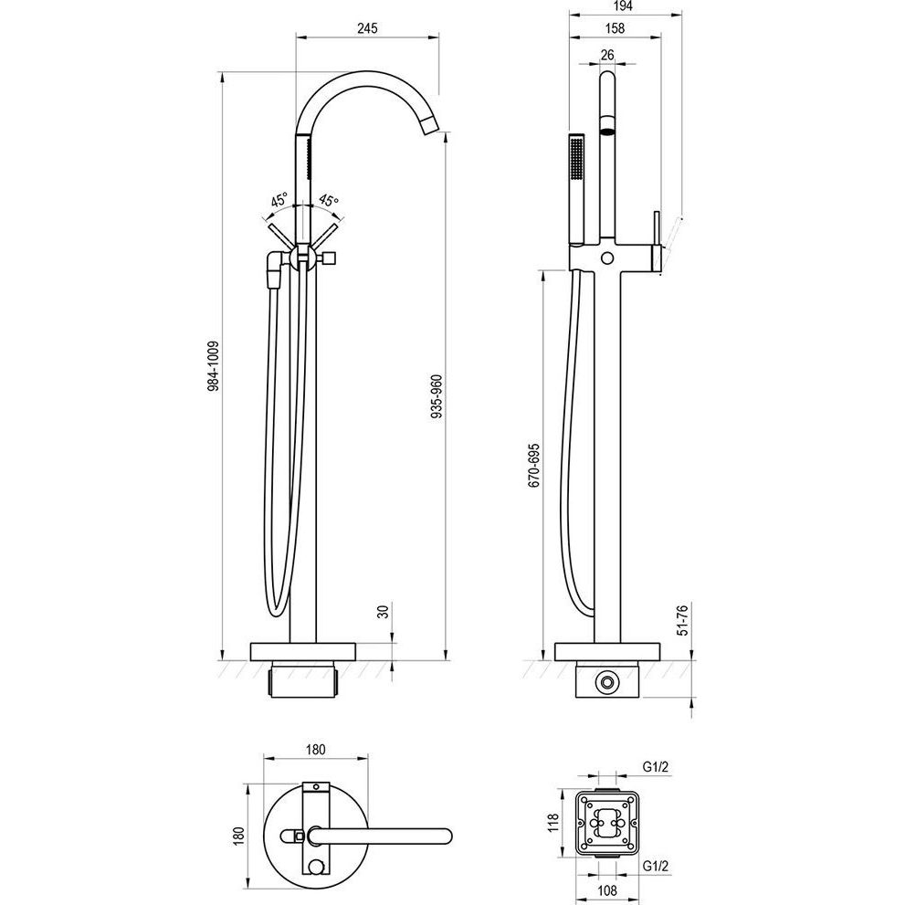 Все установки должны выполняться на полу ванной комнаты. Монтажный модуль R-box входит в комплект поставки. Корпус смесителя полностью изготовлен из латуни. Основной корпус RB 07A.50 не является частью напольного смесителя и приобретается отдельно. R-Box позволяет крепить смеситель к полу, не содержит материалов для подключения водопровода или других монтажных материалов. Для очистки аккумуляторов мы рекомендуем RAVAK Cleaner Chrome.