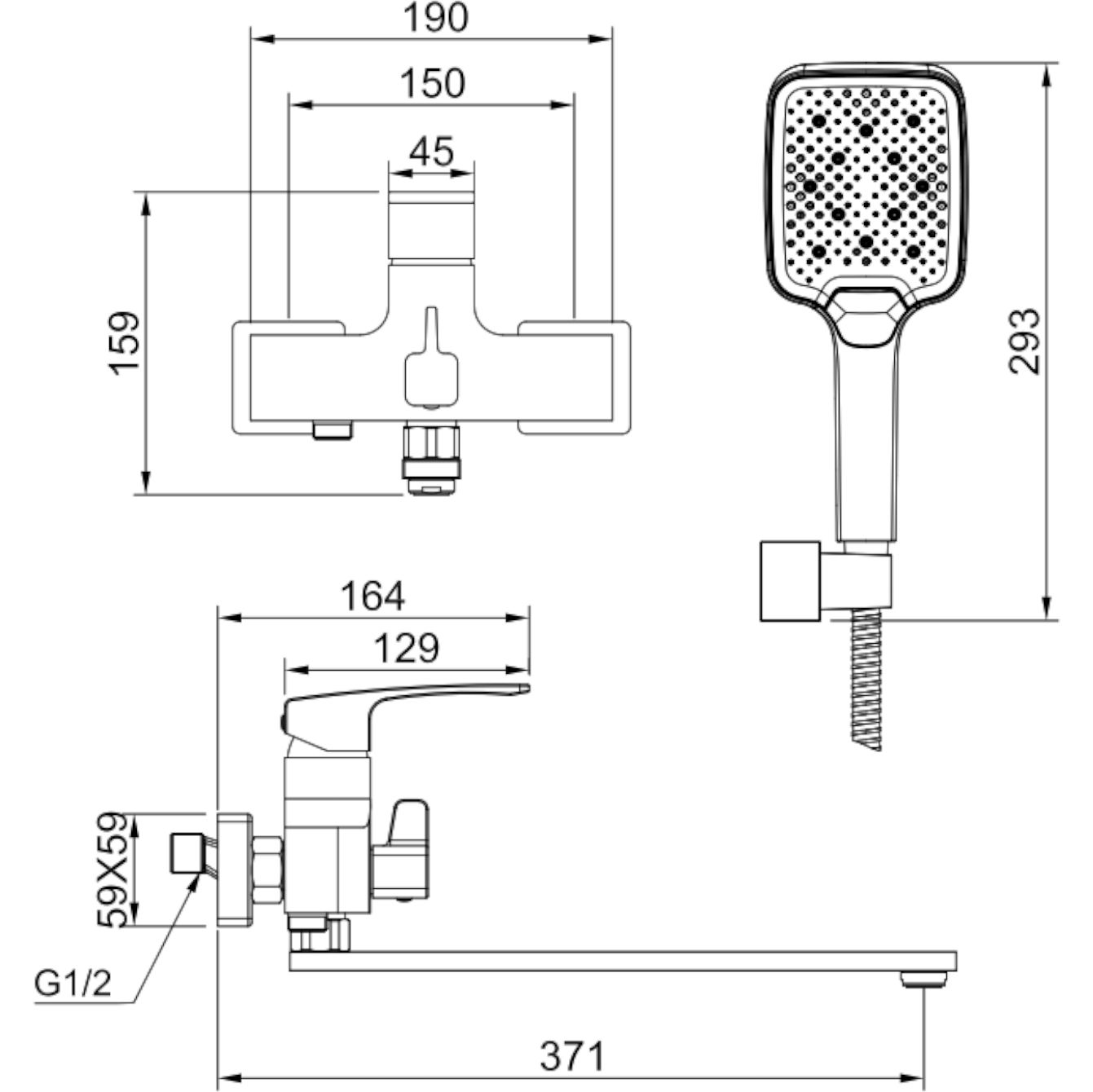 Смеситель для ванны Raglo R01.22 с душевым гарнитуром, материал латунь, цвет хром.