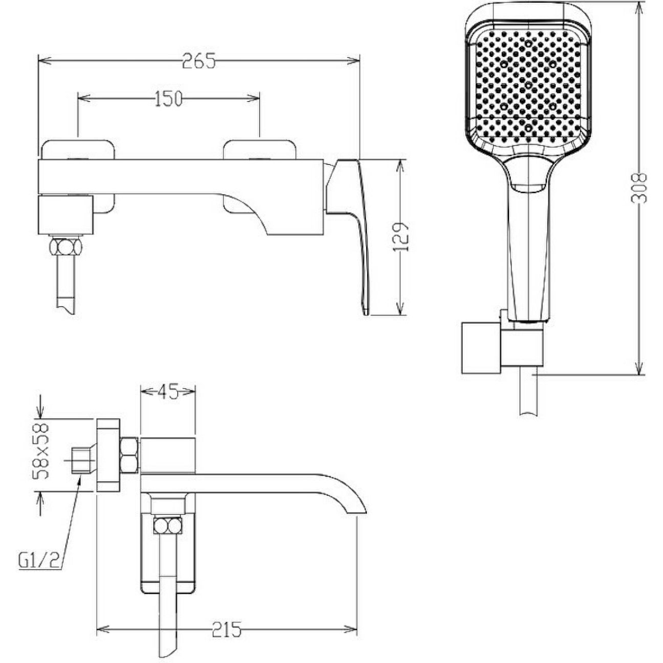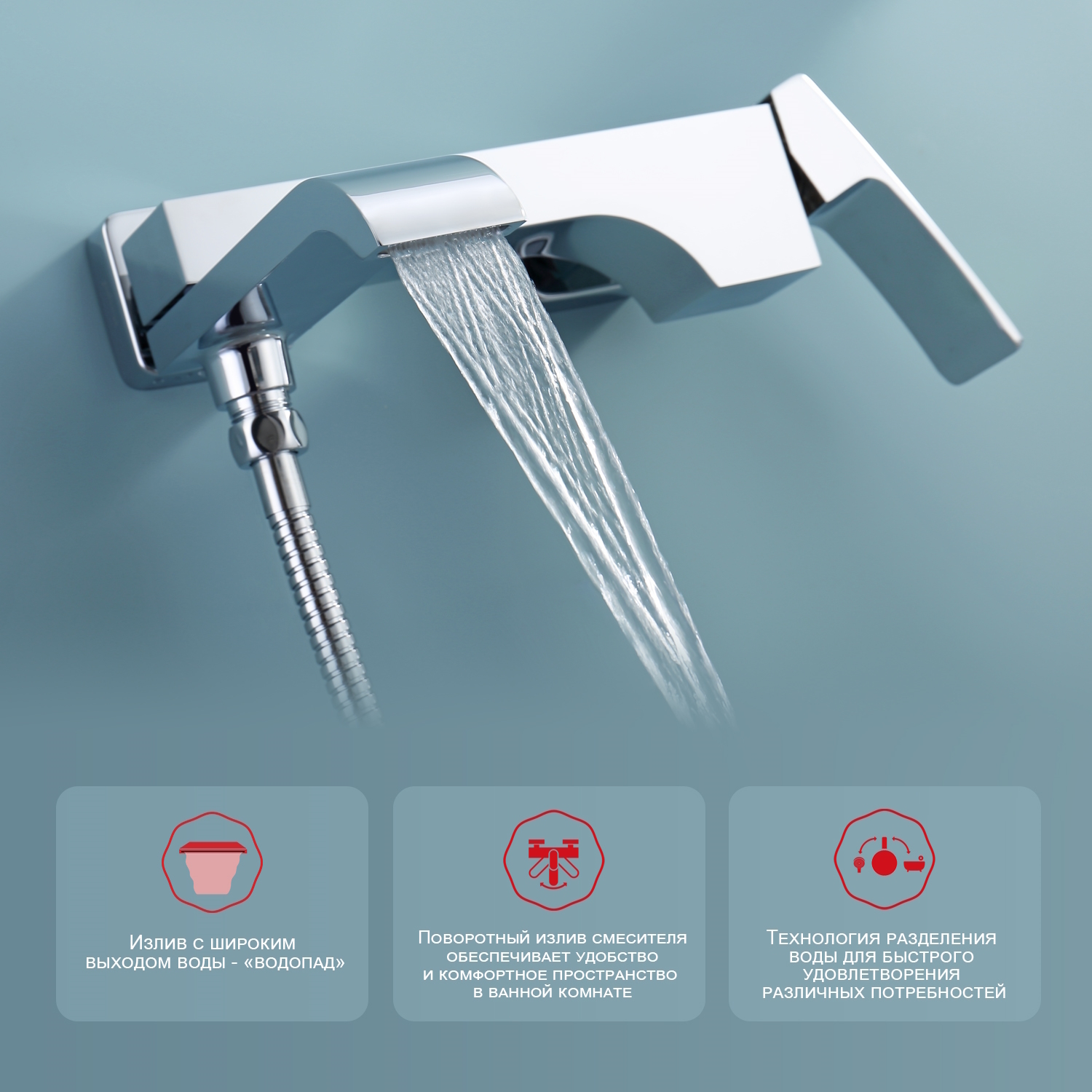 Смеситель для ванны Raglo R02.30 с душевым гарнитуром, материал латунь, цвет хром.
