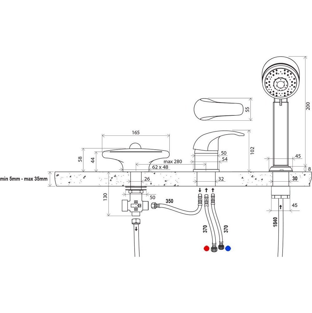 Смеситель для ванны Ravak Rosa RS 025.00 X07P003 на 3 отверстия, материал - латунь, цвет - хром.