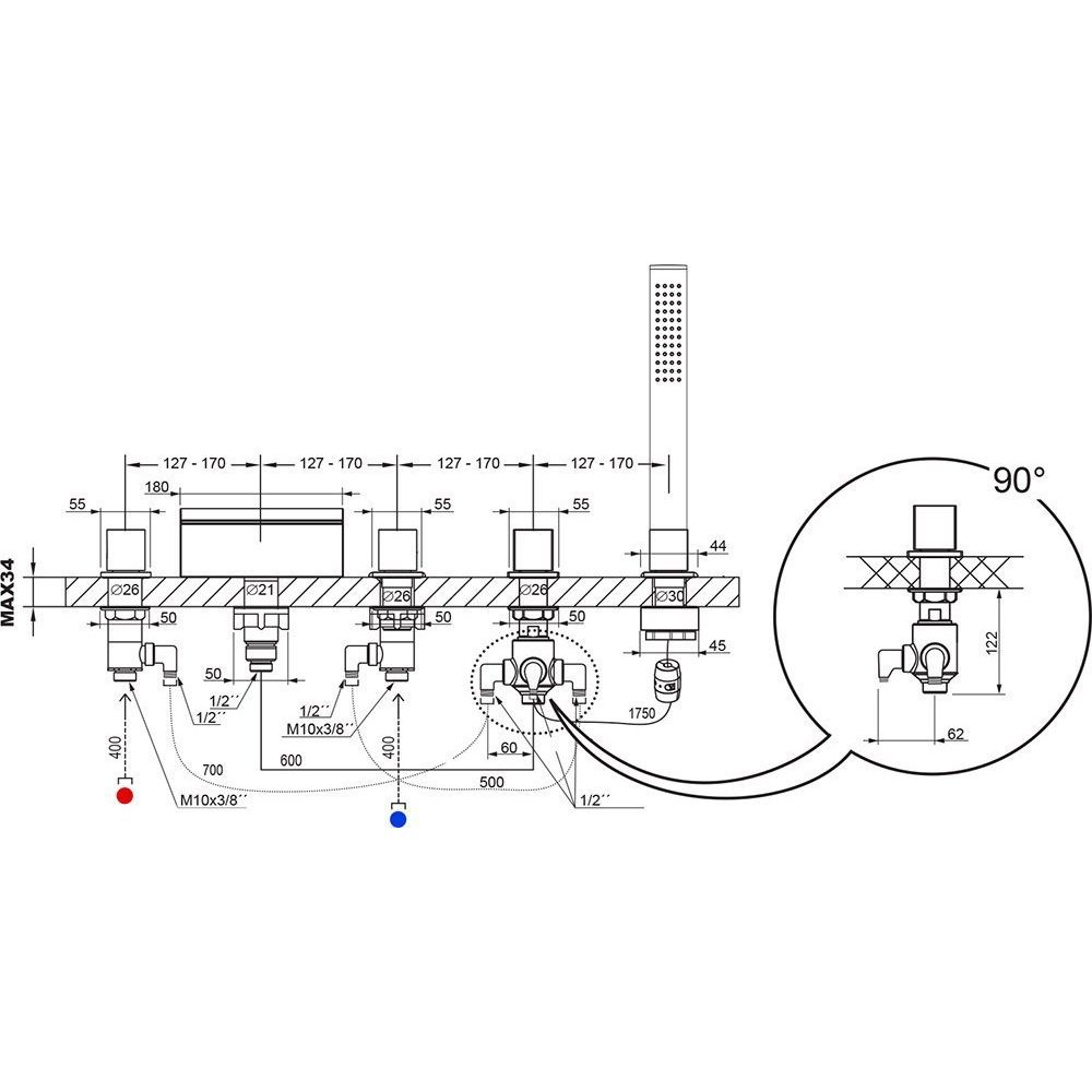 исполнение: Смесители для ванны устанавливаются на ванну с достаточной шириной и прямизной верхнего борта - на 3,4 или 5 отверстий.