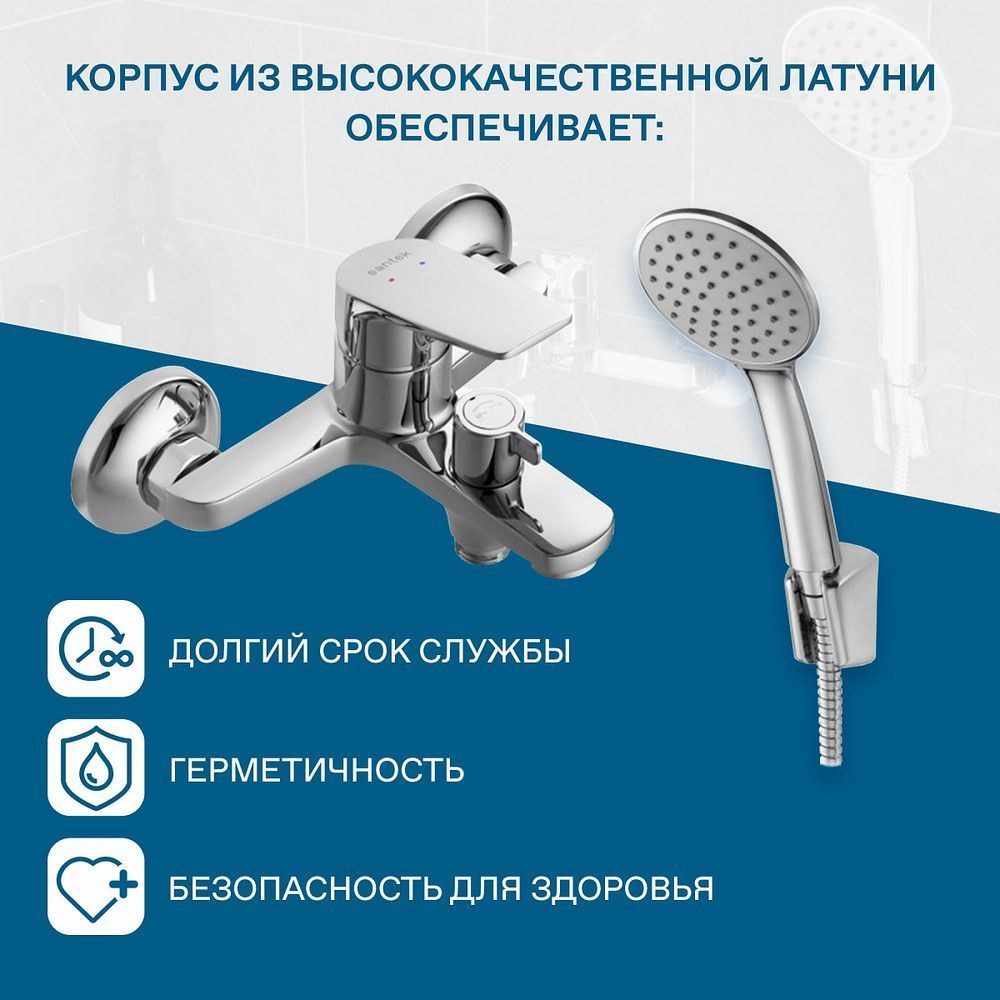 Santek Кант Смеситель однорычажный для ванны-душа, хром