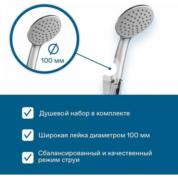 душевой набор в комплекте: лейка ø100 мм; шланг 1.5 м, настенный держатель