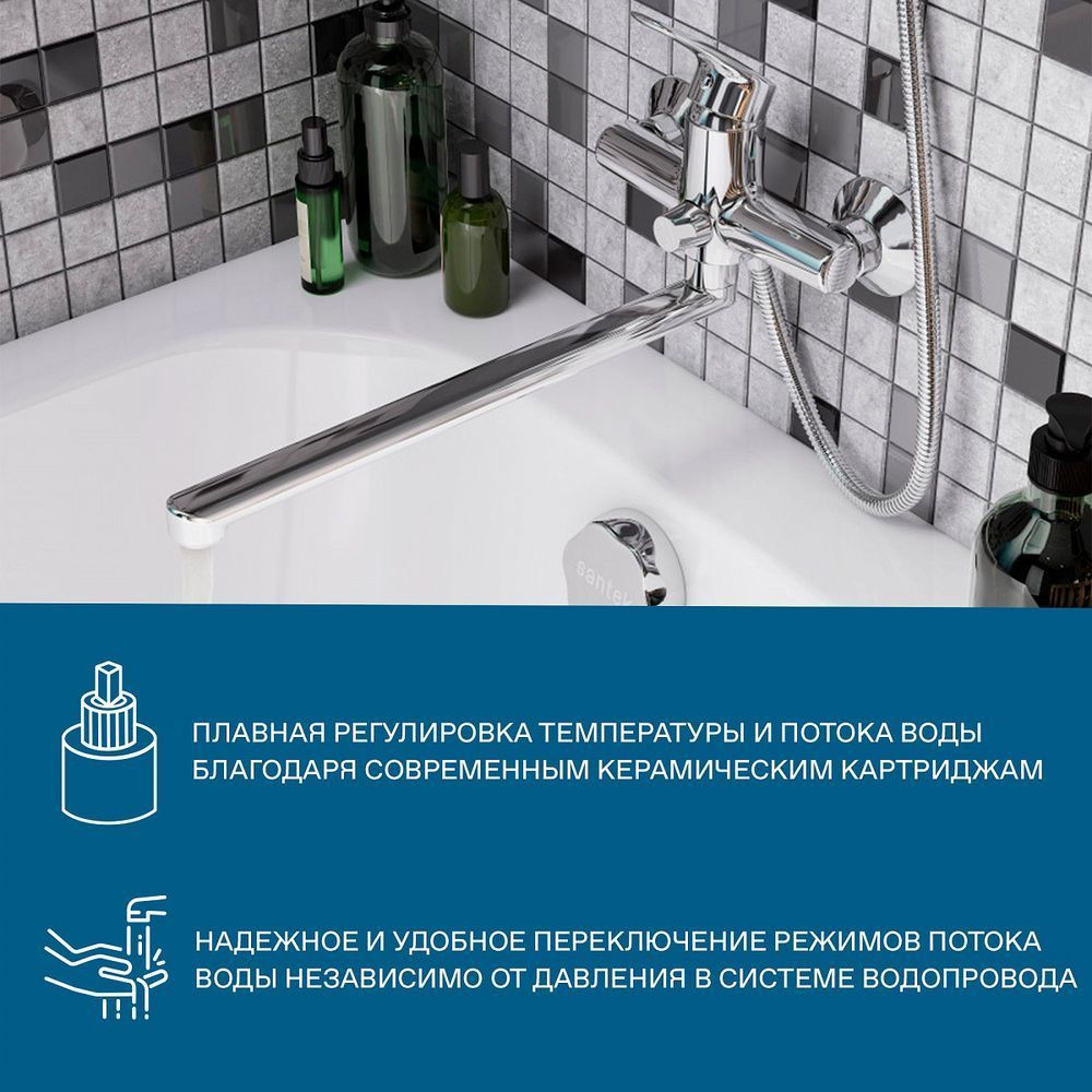 Santek Марион Смеситель однорычажный для ванны-душа с длинный поворотным изливом, хром