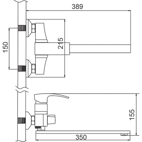 Смеситель для ванны Gerhans K13114Y с длинным изливом, материал латунь, цвет золотой сатин.