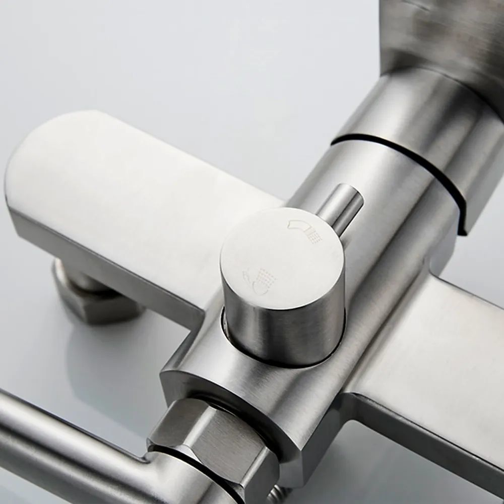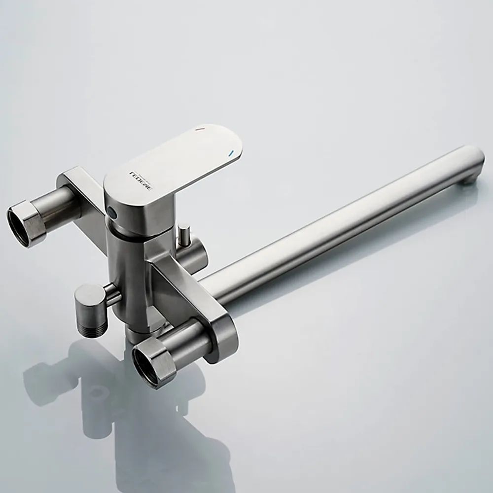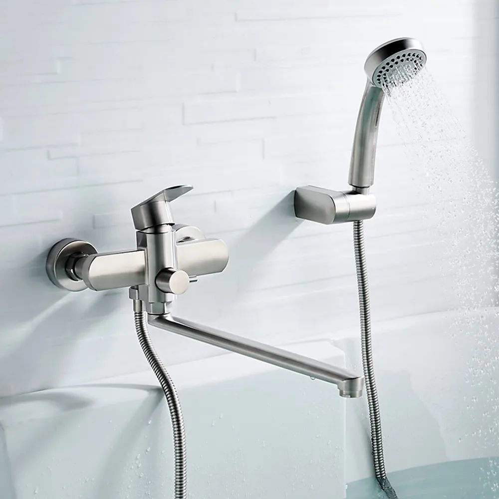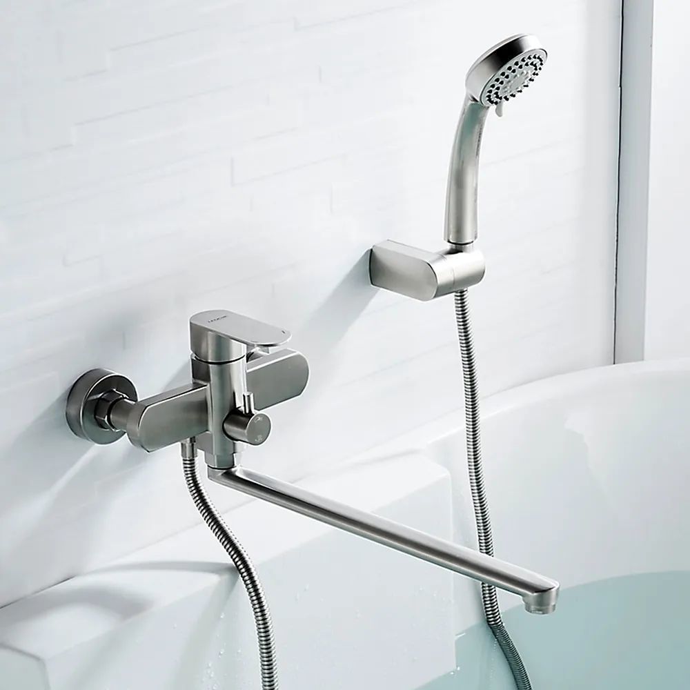 Смеситель для ванны Ledeme L72216 с душевым гарнитуром и длинным изливом, материал нержавеющая сталь, цвет нержавеющая сталь.