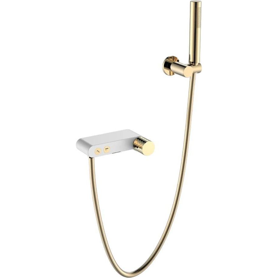 Смеситель для ванны Boheme Stick с душевым гарнитуром, материал латунь, цвет белый/золото глянцевое.