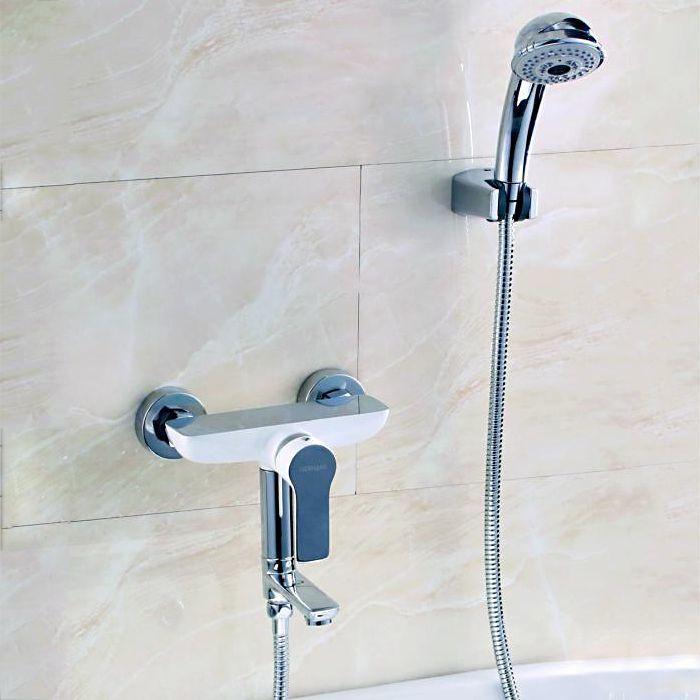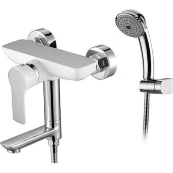 Смеситель для ванны Gerhans K13015W с душевым гарнитуром, количество режимов душевой лейки - 1, длина душевого шланга - 150 см, поворотный излив, материал - латунь, цвет - белый/хром.