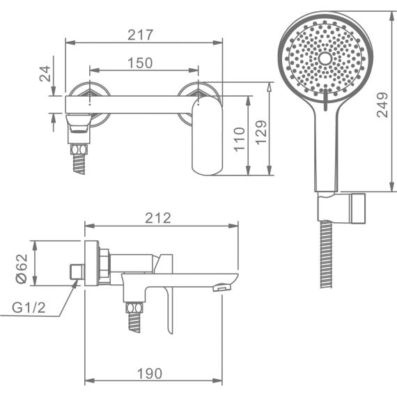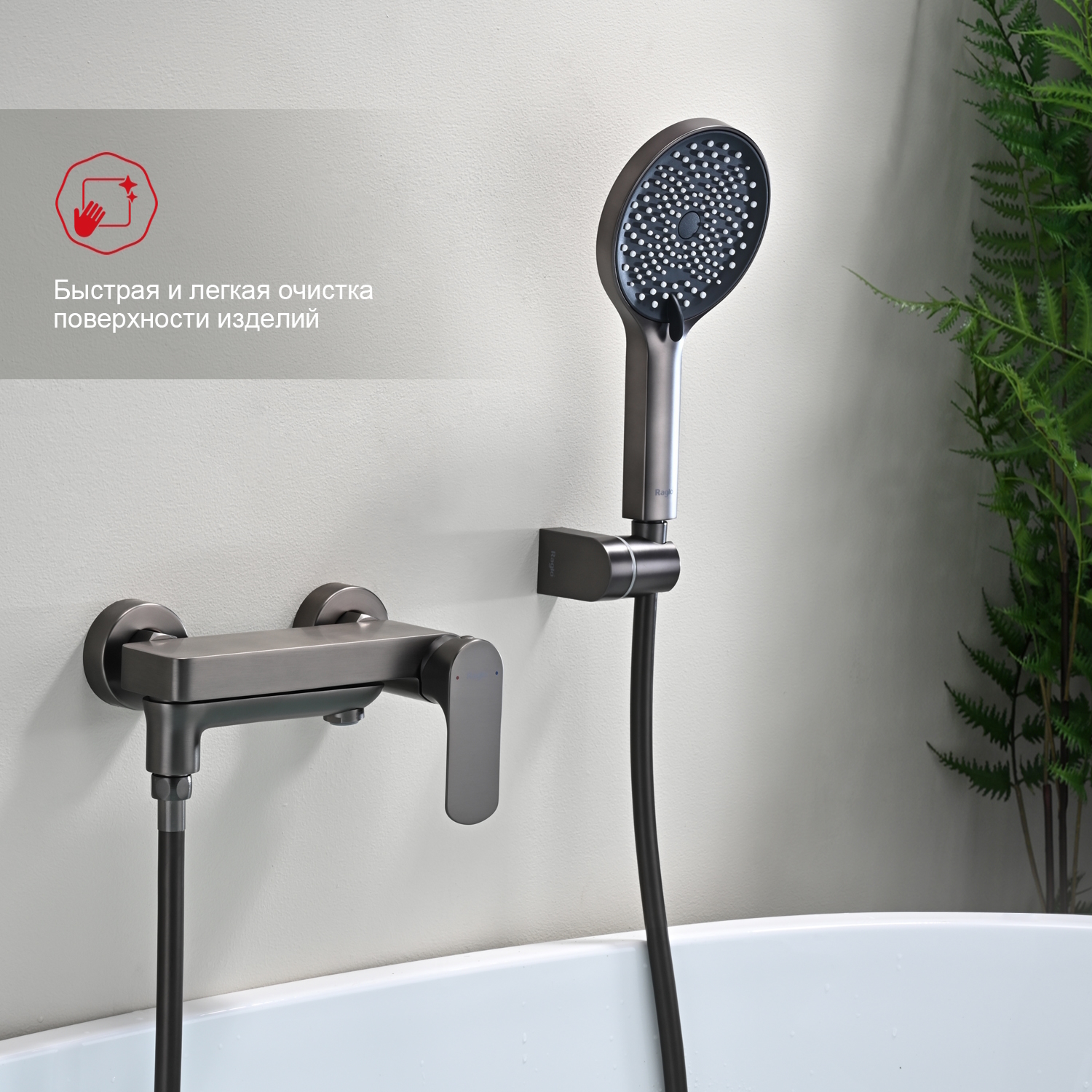 Смеситель для ванны Raglo R03.30.09 с душевым гарнитуром, материал латунь, цвет графит.