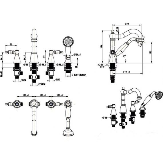 Смеситель для ванны Boheme Murano 395-MR-W с душевым гарнитуром, материал латунь, цвет золото