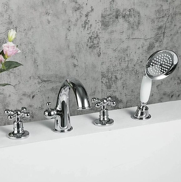 Предлагаемый смеситель на борт ванны G1189 GAPPO на четыре отверстия. Изготовлен из латуни в цвете хром. Металлическая рукоятка, Корпус монолитный, неповоротный. Керамический Испанский картридж Ф 35 мм. Гибкая подводка (500 мм). Аэратор. Шланг. (1500 мм), вращающийся на 360 градусов. Однопозиционная лейка. Используется для установки на борт ванны.