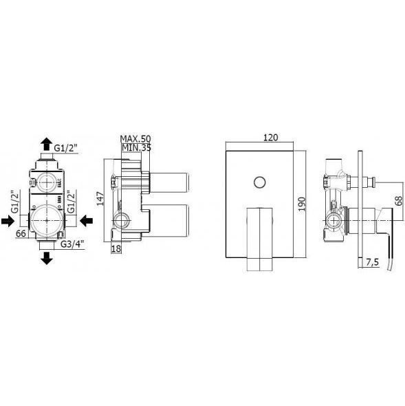 Смеситель для ванны Paffoni Elle EL015NO/M со скрытой частью, материал латунь, цвет чёрный матовый.