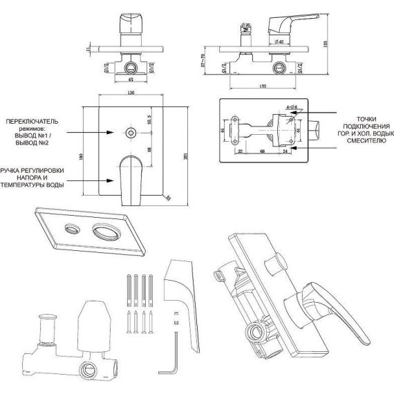Смеситель для душа Aquanet Static AF330-51С со скрытой частью, материал латунь, цвет хром.