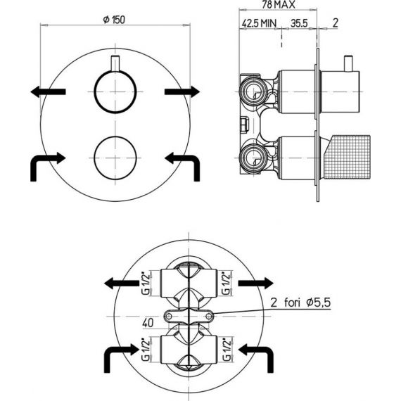Встраиваемый монтаж скрывает все соединения и оставляет на виду только рычаги управления, экономя пространство.