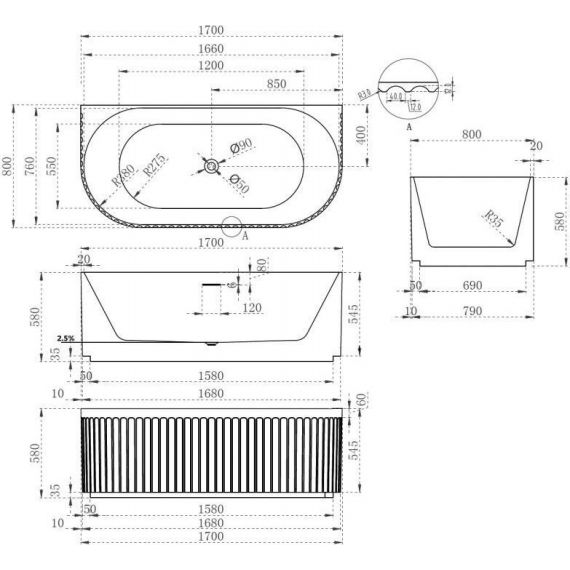 Ванна акриловая Abber AB9416-1.7 170x80 см