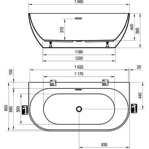 Допустимые отклонения по длине и ширине ванны составляют ± 5 мм