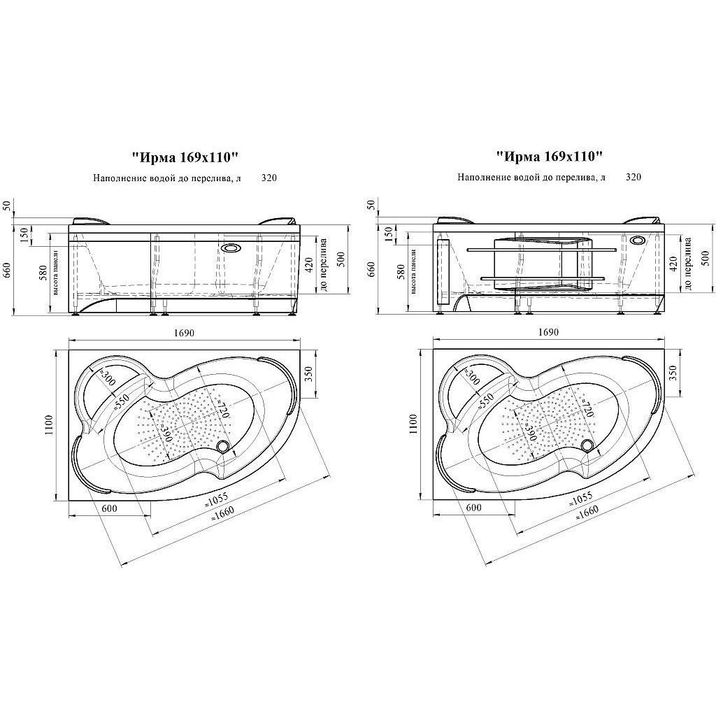 Ванна гидромассажная Радомир Ирма 169x110 см L (Гидромассаж "Фитнес" Gold)
