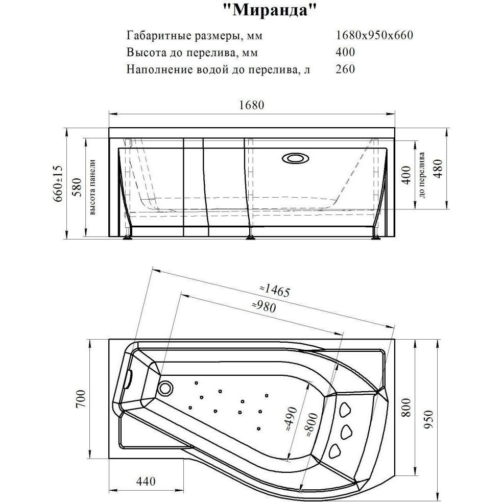 Ванна гидромассажная Радомир Миранда 168x95 см L (Гидромассаж "Баланс")