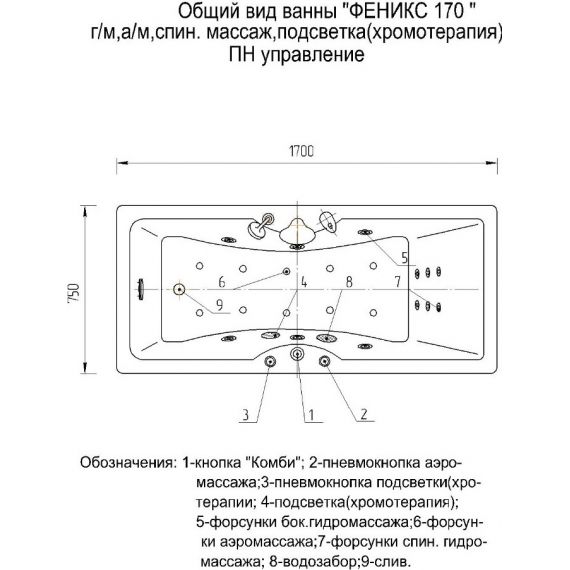 Ванна гидромассажная Aquatek Феникс 170x75 см