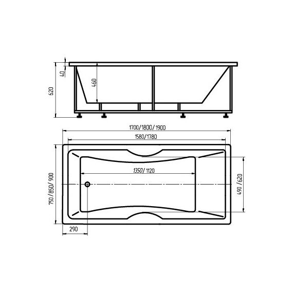 Внутр. размер ванны 158 см