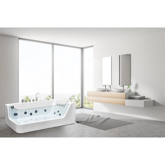 Экран из закаленного стекла придает ванне легкость и грациозность.