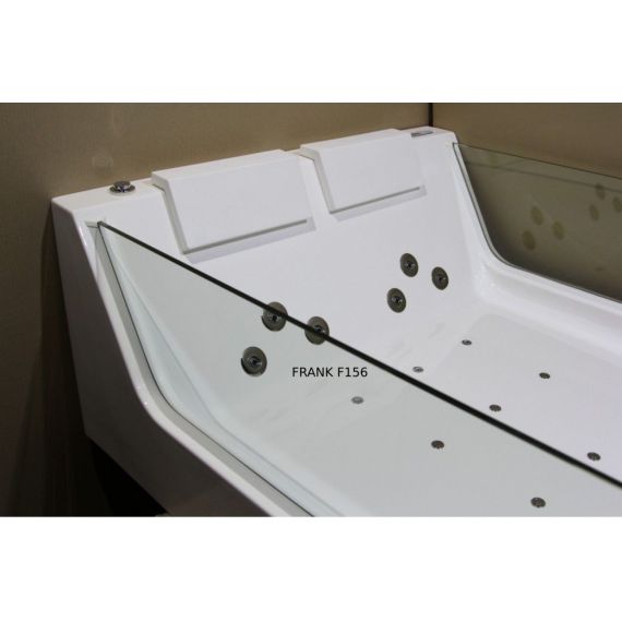 Все гидромассажные ванны Frank поставляются в максимальной комплектации и имеют множества функций. Ванна с гидромассажем Frank F156 отдельностоящая с аэромассажем, гидромассажем, турбомассажем. В ногах установлен многоцветный подводный фонарь. Также ванна снабжена системой дезинфекции. Форсунки расположены в ванне с учётом эргономики тела и способствуют максимальному охвату поверхности тела при работе аэро- и гидромассажных двигателей. Вся ванна сделана из литьевого акрила. Стоит система слива остатков воды из форсунков. Используется высокопрочное стекло 10 мм.с антибактериальным покрытием без металлической окантовки, что придаёт ванне современный дизайн. Уникальный дизайн ванны с прозрачными стеклянными боковыми стенками. Идеально подходит для совместных водных процедур с любимым человеком.
