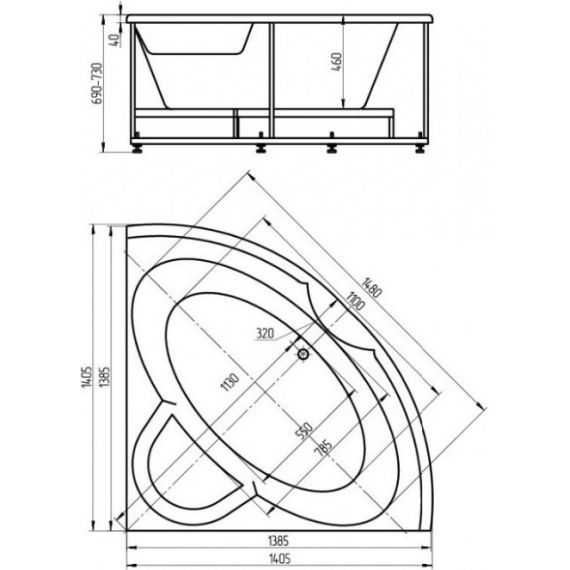 Внутр. размер ванны 148 см