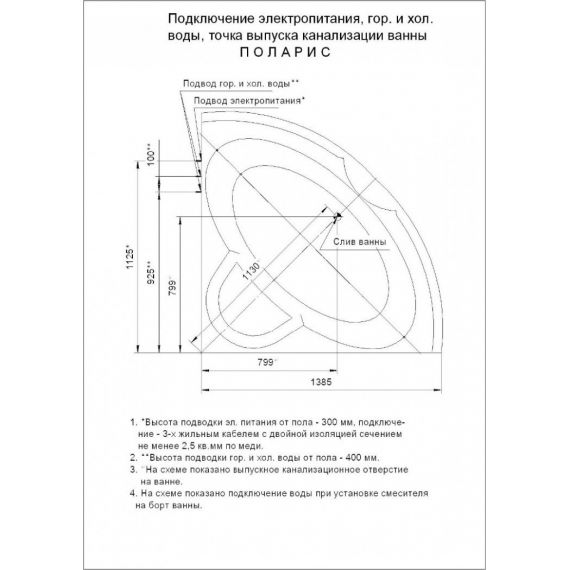 отверстия под смеситель (при покупке ванна+смеситель отверстия отдельно заказывать не надо)