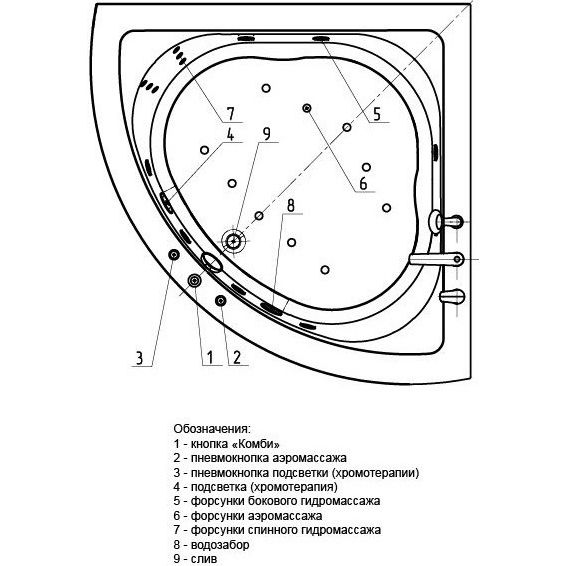 усиленный гидромассаж (двигатель 1,5 кВт)