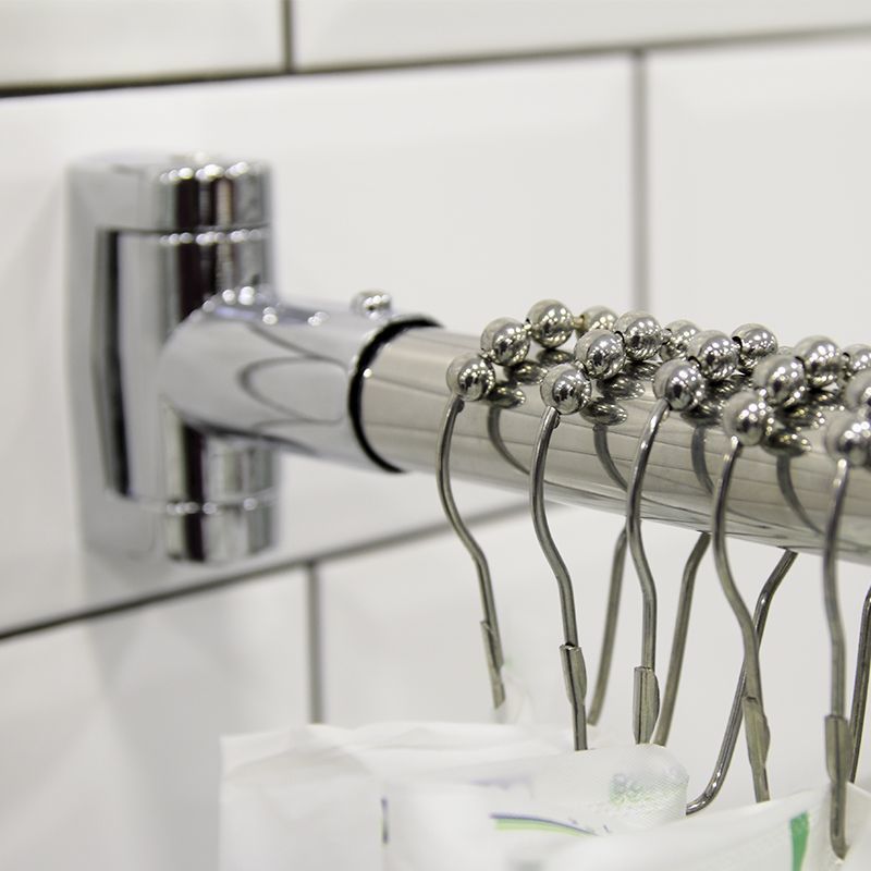 Карниз для шторы на ванну Ирма выпускается в хромированном, золотом и бронзовом цветах.