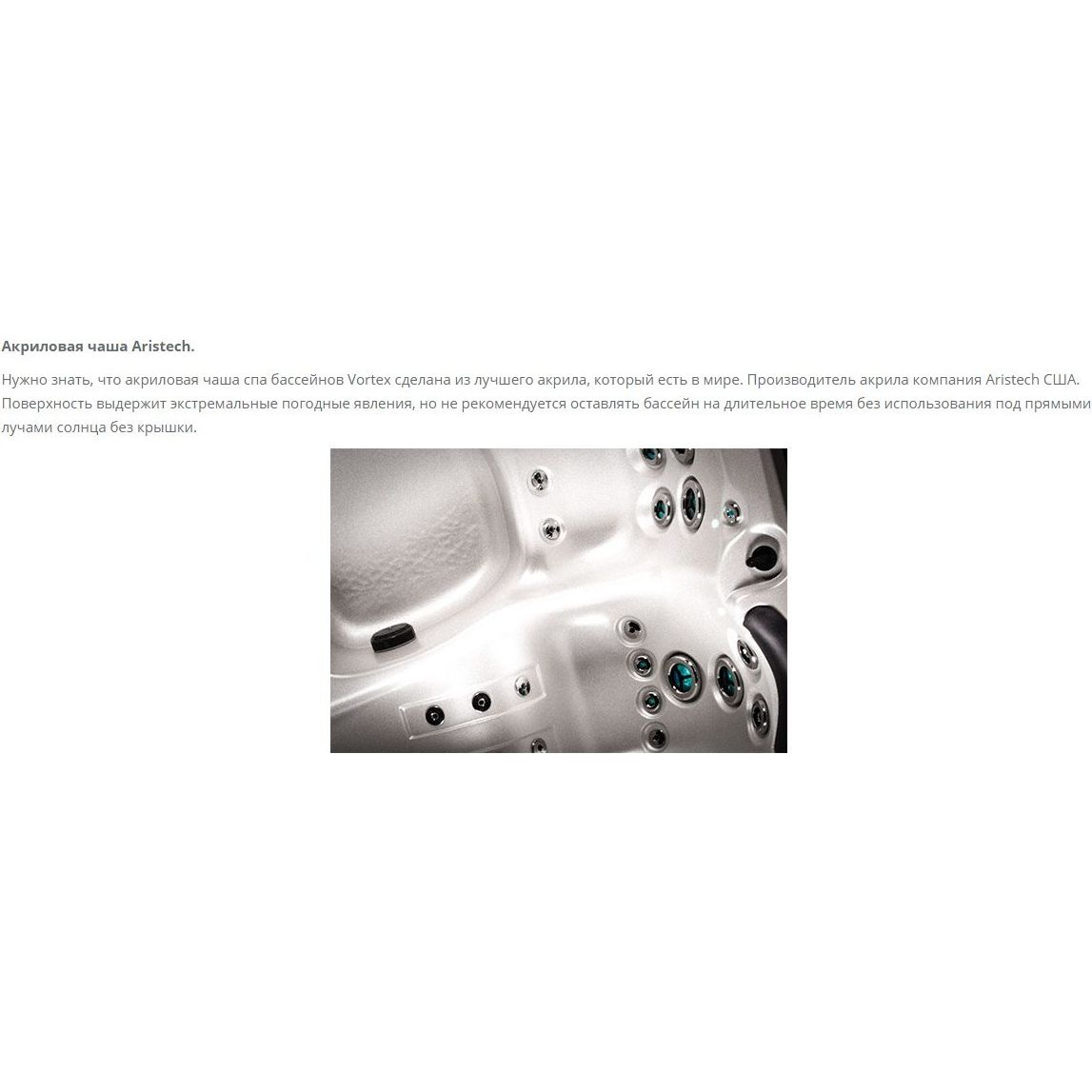 Рамой бассейнов Vortex является древесина свободной конструкции, или литьевой формованный пластик. Они не восприимчивы к гниению, плесени или паразитам, повреждениям и рассчитаны на не неограниченный срок работы.