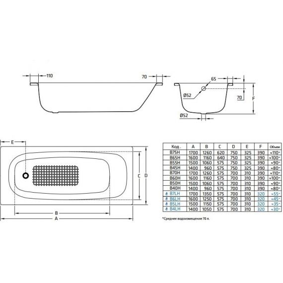 Ванна стальная BLB UNIVERSAL HG 150x70 см